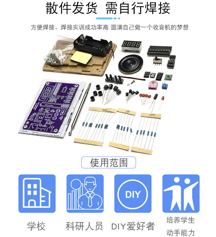 Radio assembly kit FMFM circuit board making single chip diy electronic making welding practice parts