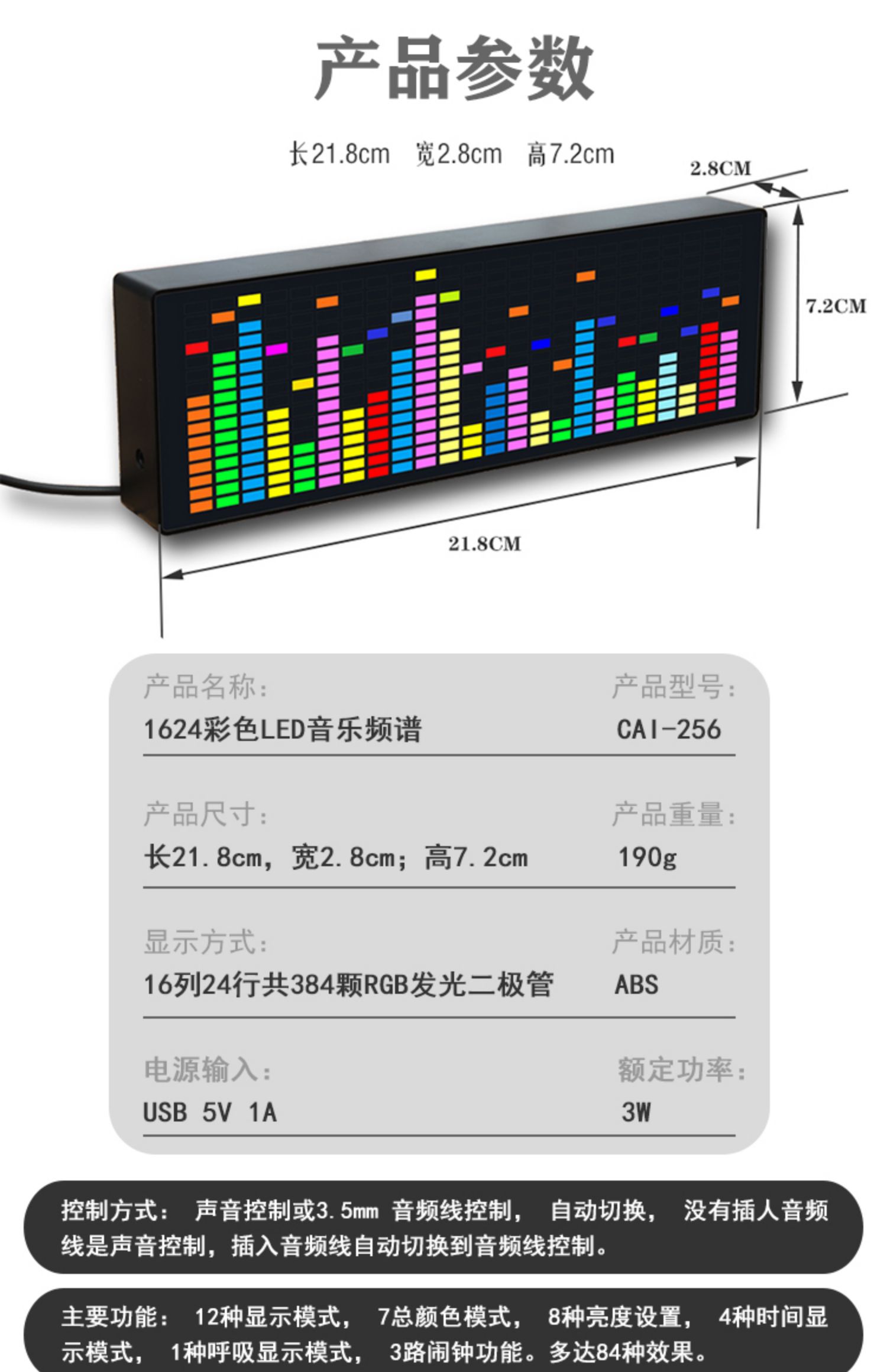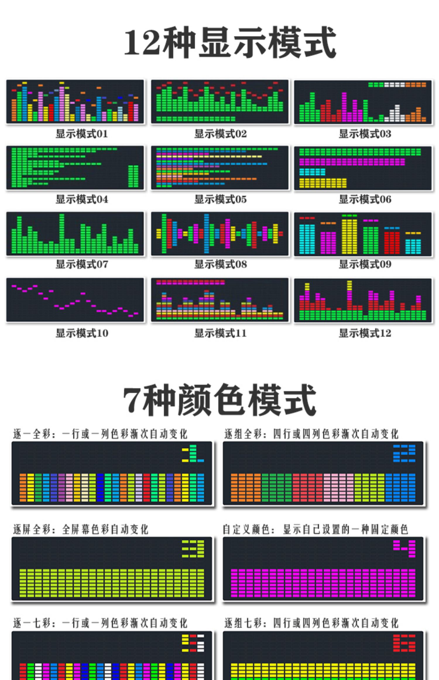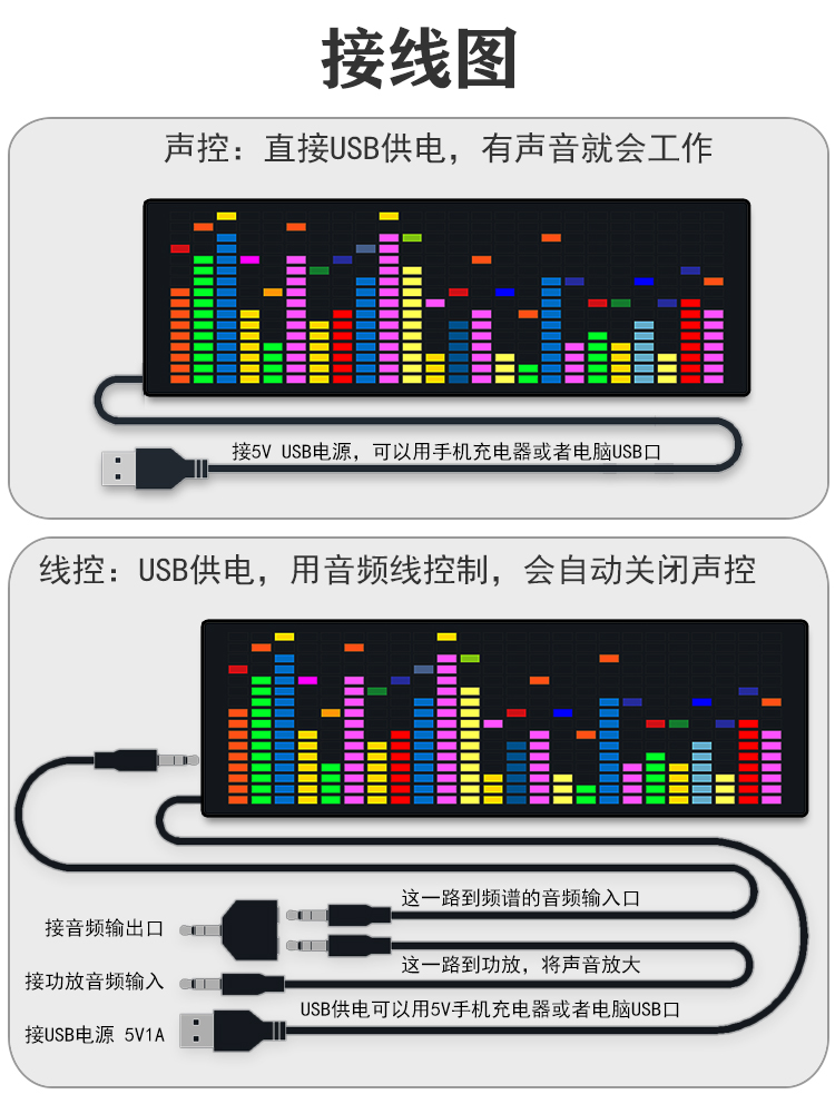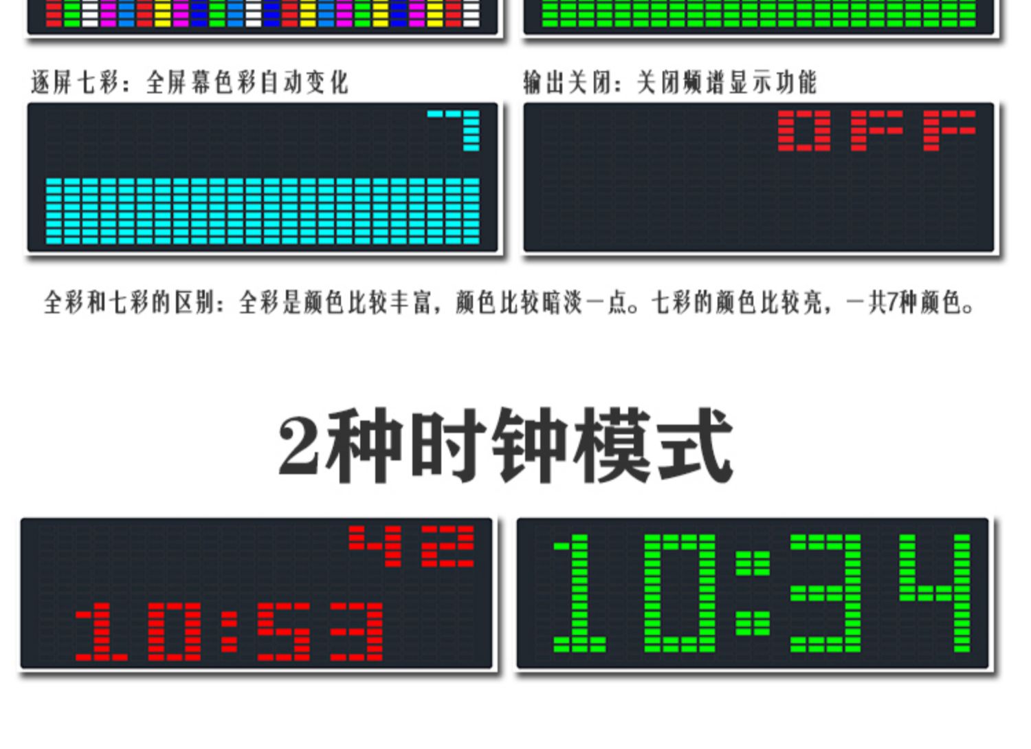 Colorful RGB music spectrum display LED Sound pickup atmosphere light electronic clock voice control spectrum level rhythm light