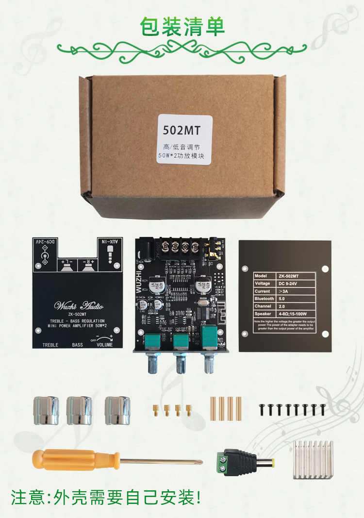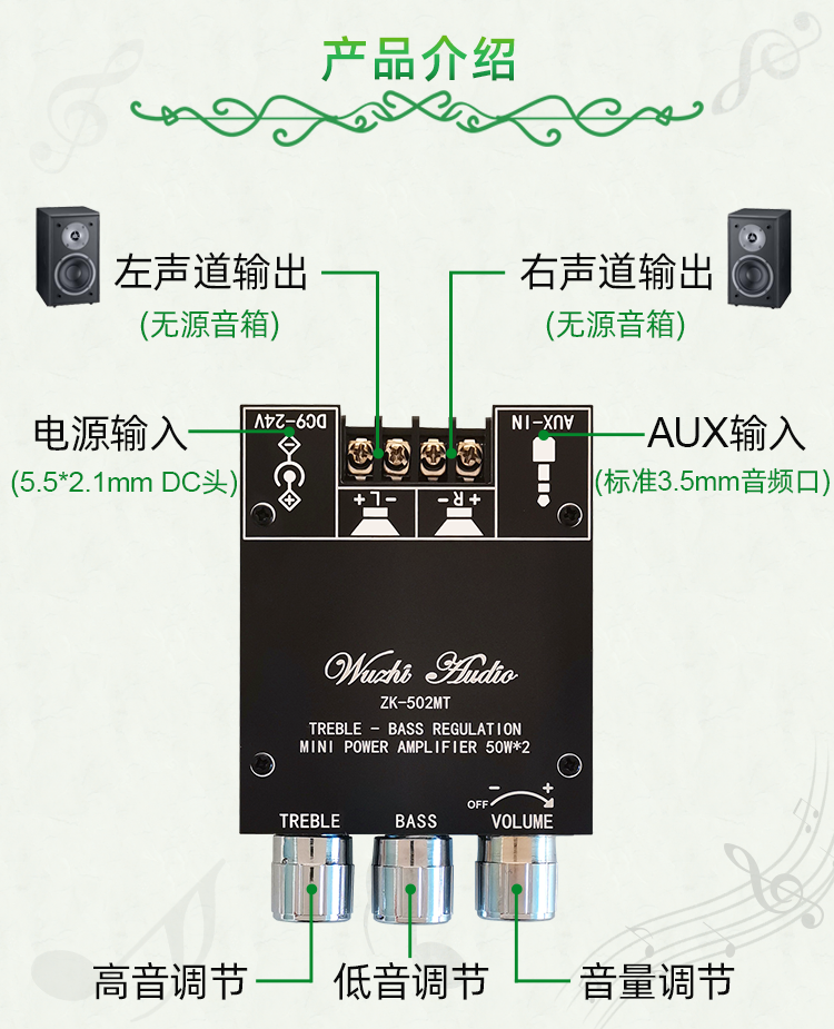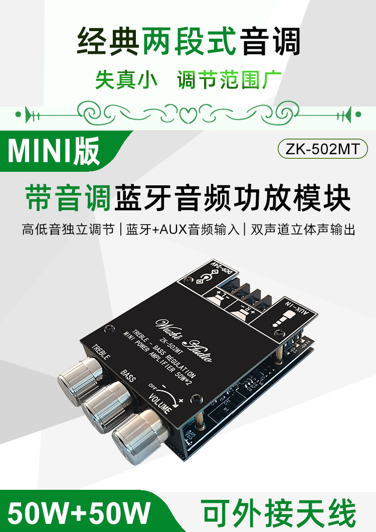 ZK-502MT 2.0 stereo Bluetooth audio digital HIFI amplifier board module 50W * 2 bass adjustment