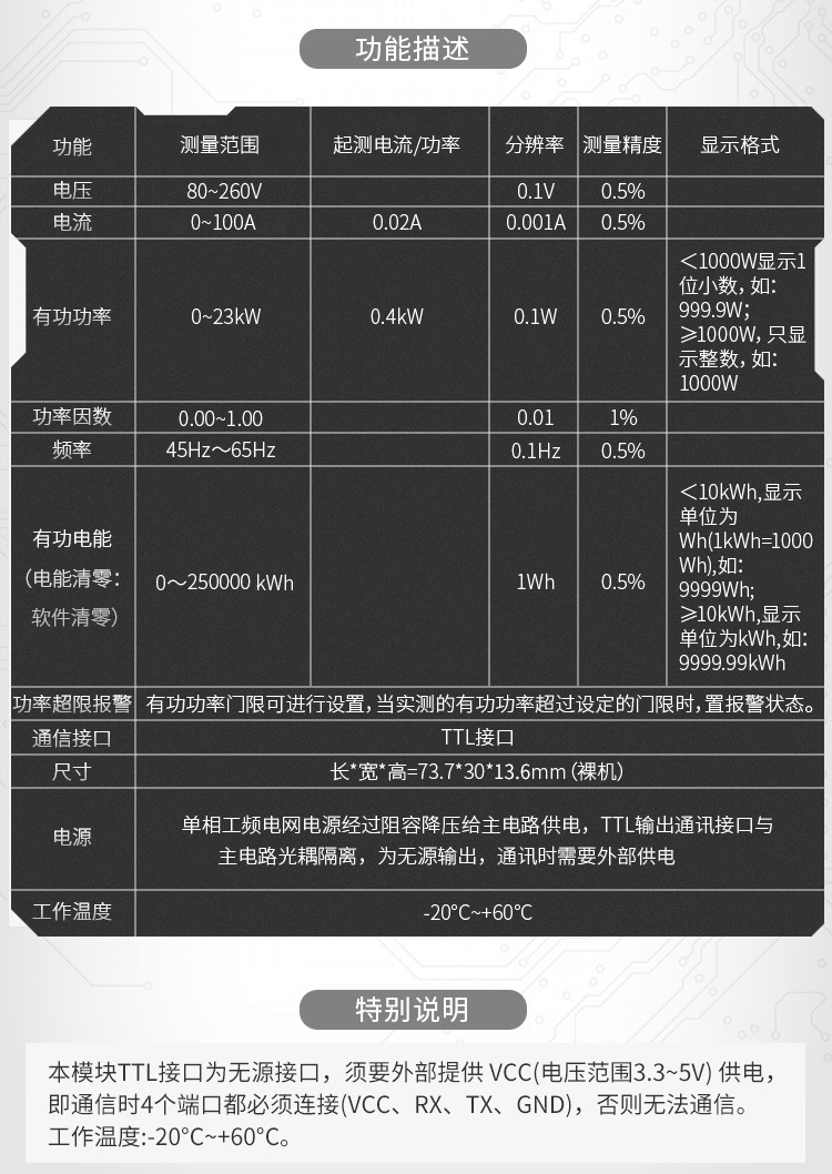Pzem-004T Brand Ac Voltage Current Power Frequency Electrical Energy Communication Module Module Ttl Serial Communication