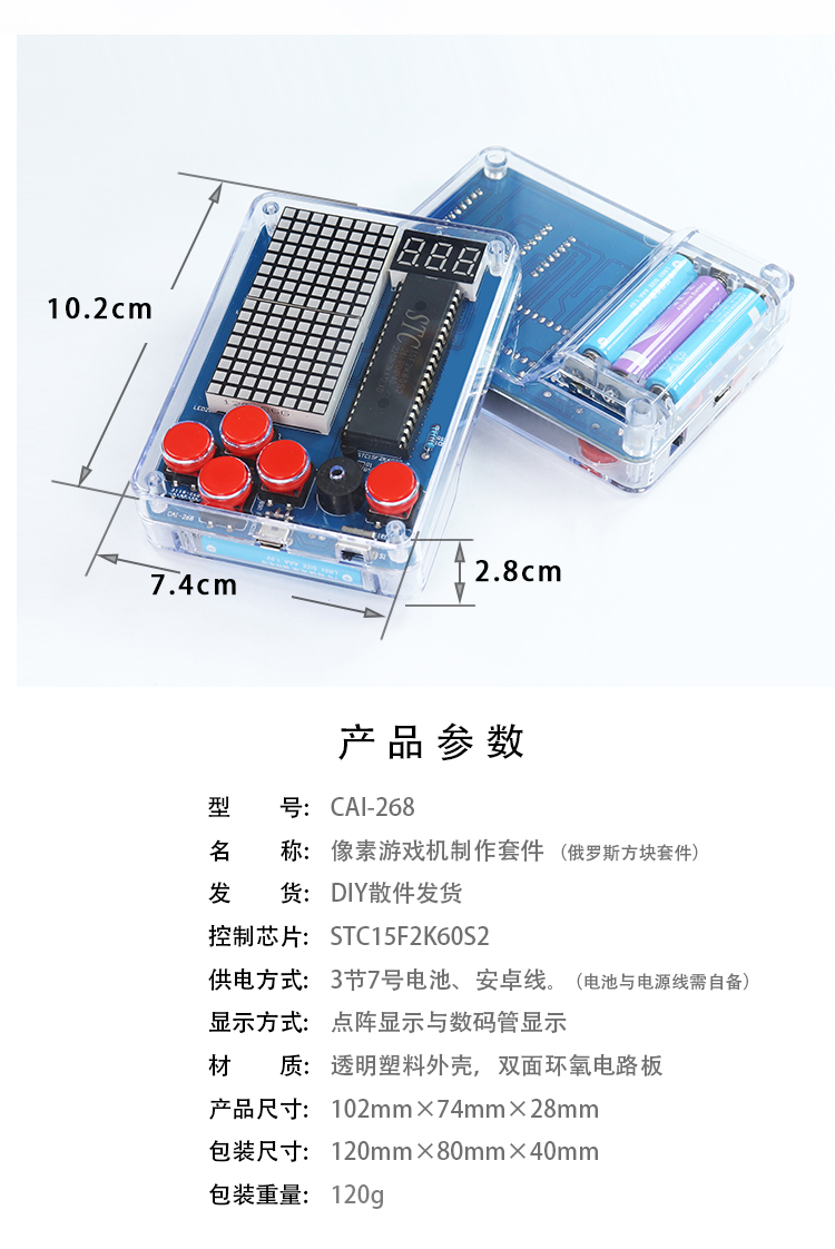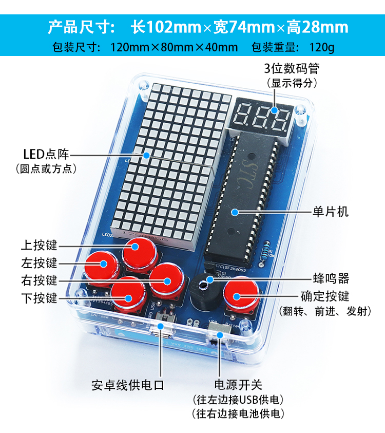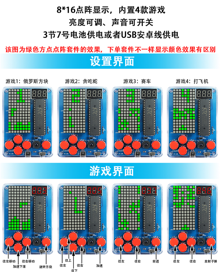 Pixel Game Machine Production Kit 51 Single Piece Tetris Parts DIY Welding Training Digital Small Production