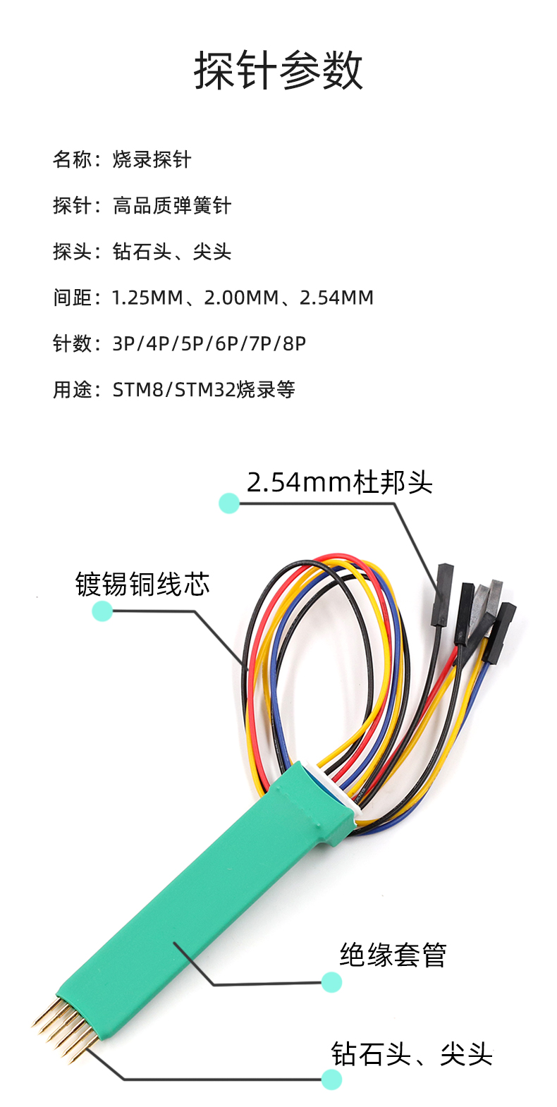 Burn probe 1.25/2.0/2.54mm 3/4/5/6/7/8p Diamond Head/pointed STM32 test pin