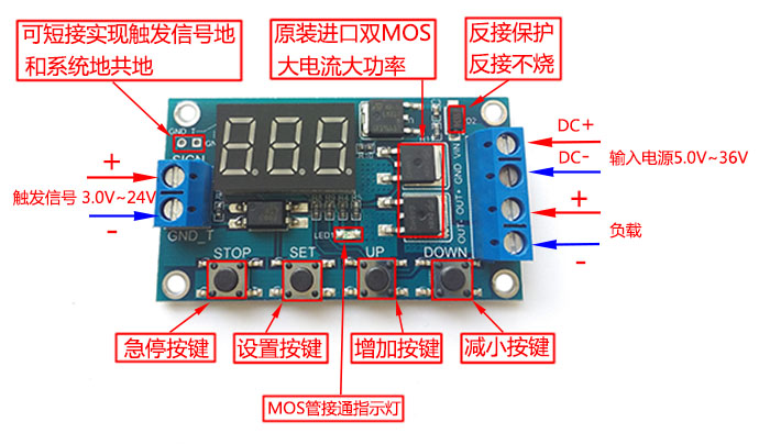 Trigger loop timing delay switch circuitdoubleMOS tube control board replaces relay module 12 24V