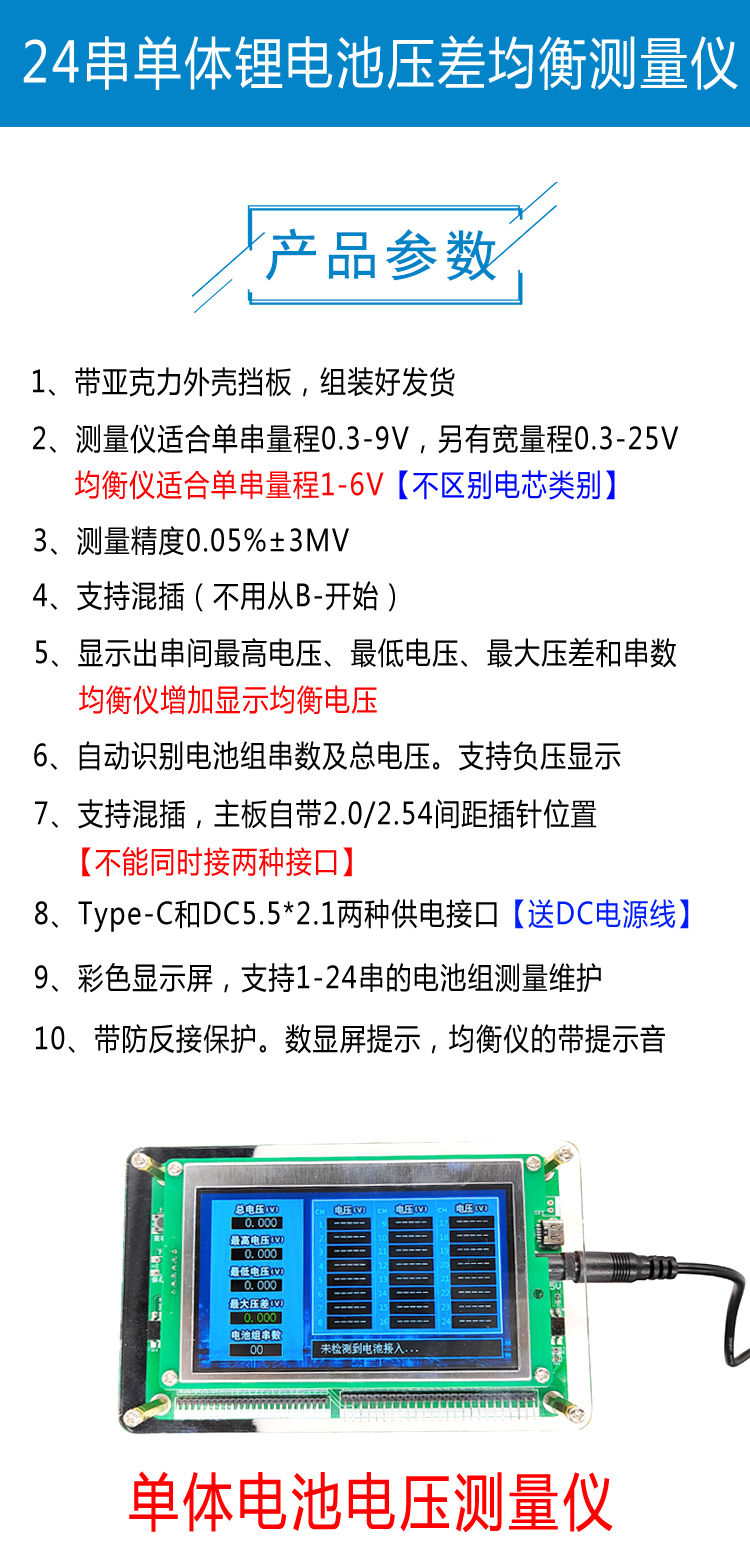 1-24 series battery series voltage tester supports mixed insertion measurement accuracy 3mv