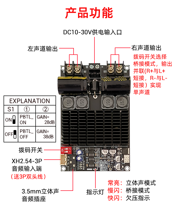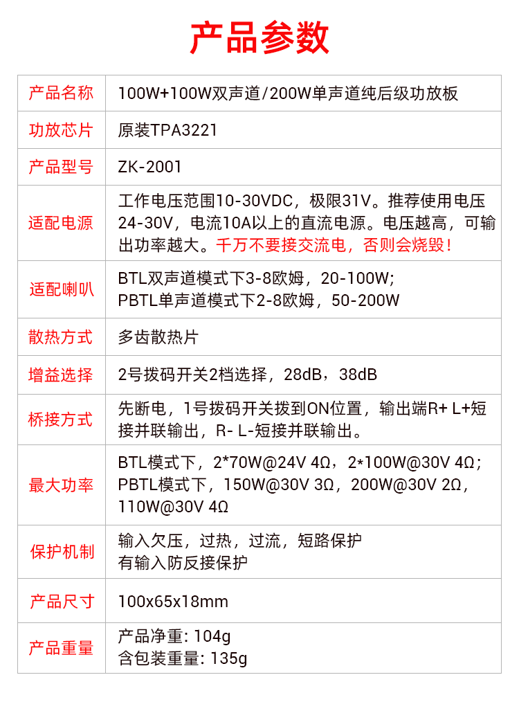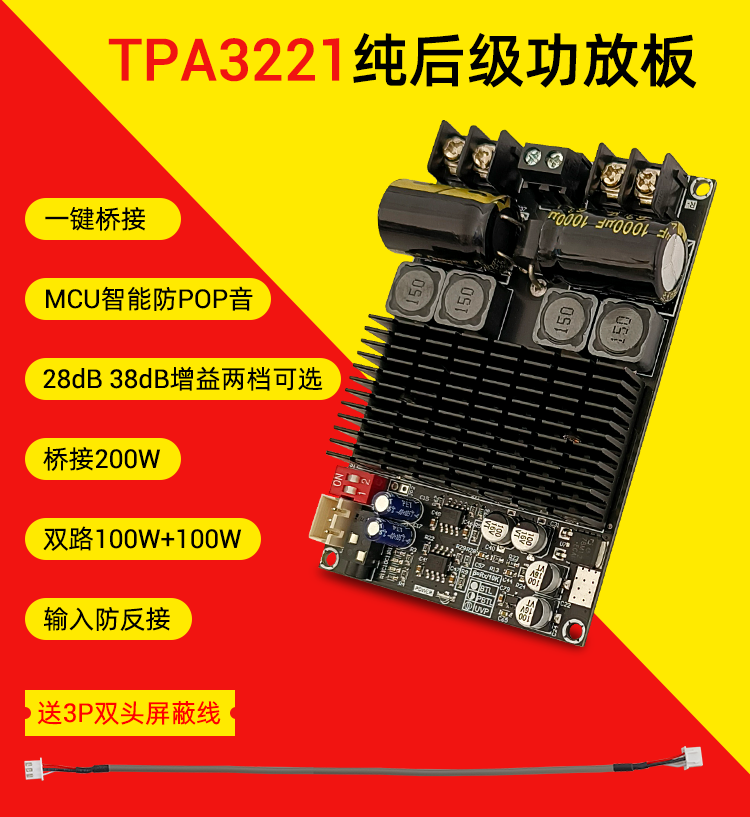 2001 pure post-stage digital power amplifier board high-power TPA3221 stereo 100WX2 bridge mono 200W