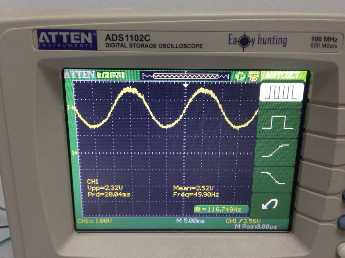 7. The output signal is a sine wave, which can be used for AD sampling