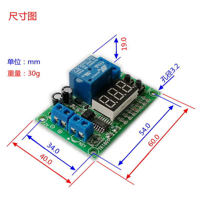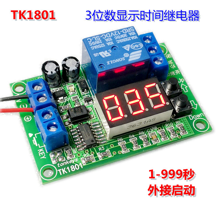 3-digit display time relay module trigger start timing stop dynamic display button adjustment