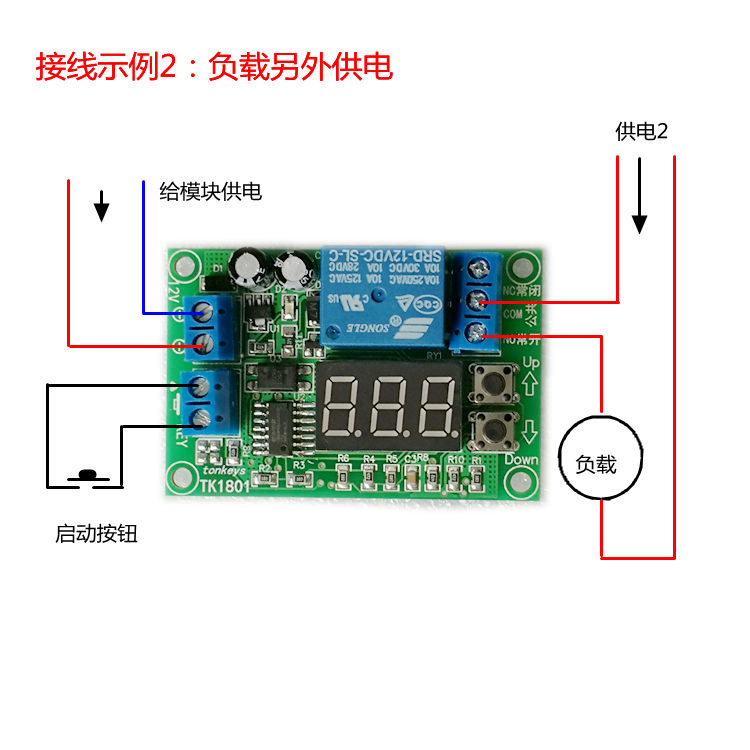 2. Time adjustment:Press the Up key to increase the time, 999, press the Down key to decrease the time, 1, the unit of time is seconds; Note that during the process, the adjustment time will immediately stop the relay and return to the initial state. Press and hold the button to adjust the time. After adjusting the time, please do not immediately turn off the power. You should wait for more than 1 second to ensure that the set time is effectively saved. The next time you turn on the power, it will be adjusted later.