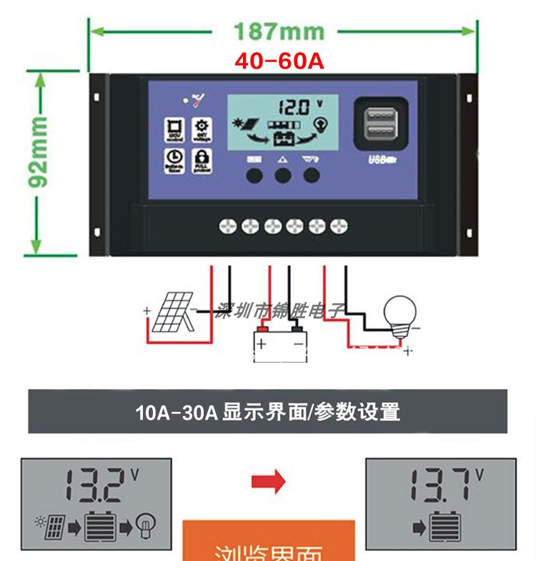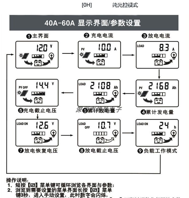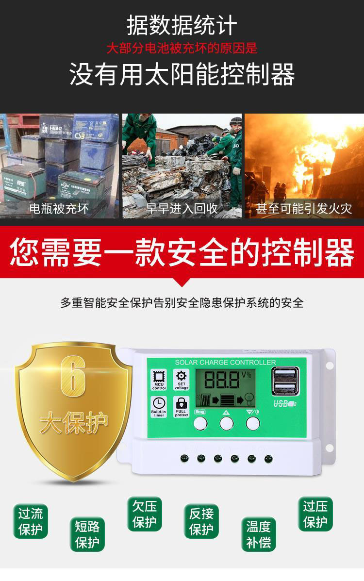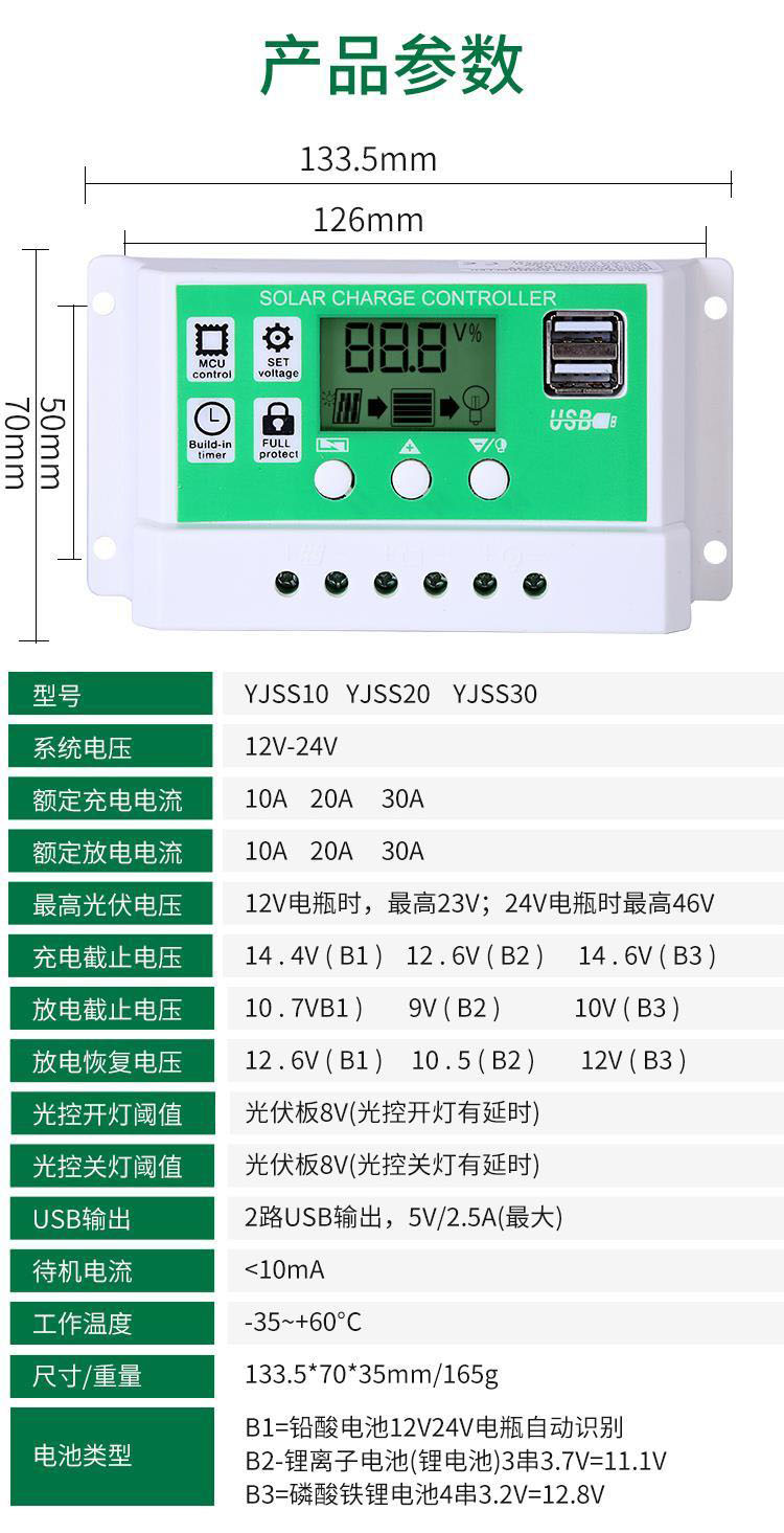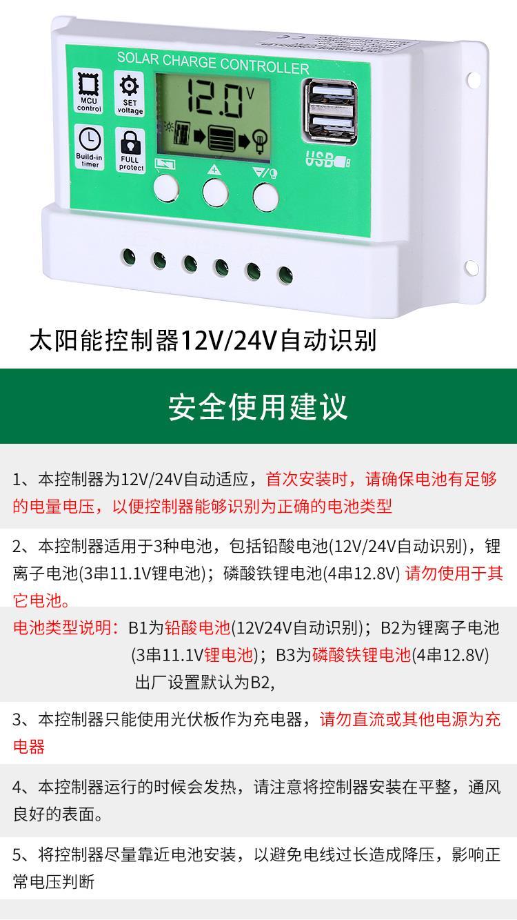 The controller defaults to B2 rechargeable lithium-ion battery (lithium battery) and the battery type is B2 mode; Please set the battery type of the lead-acid battery controller to B1 and the lithium iron phosphate battery to B3. For specific instructions, please refer to the manual or consult customer service. Thank you!
