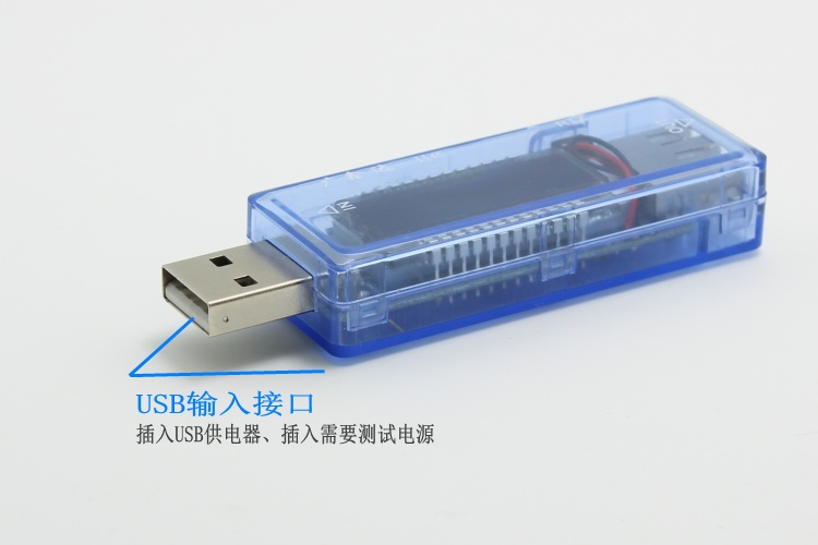 Insert the USB male connector into a 5V charger and the female socket into a mobile phone or other device to directly read the voltage and current parameters