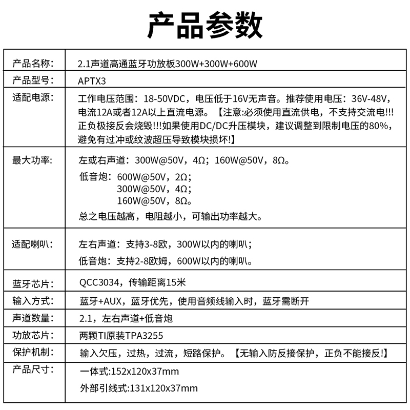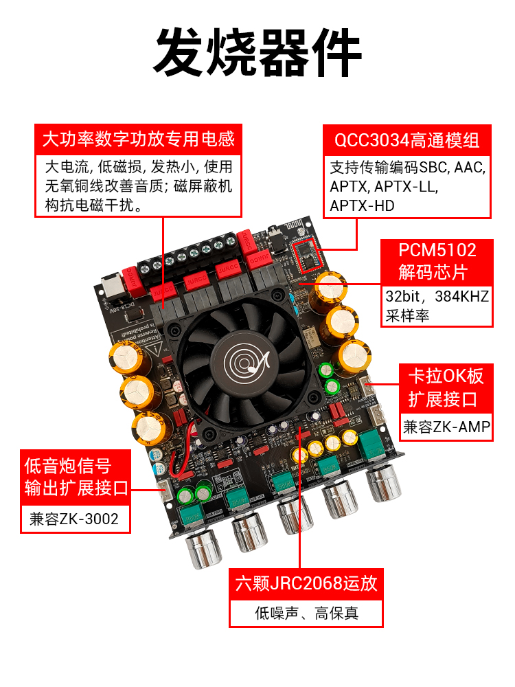 ZK-APTX3 Qualcomm Bluetooth power amplifier board 2.1 channel 300W 300W 600W power amplifier chip TPA3255