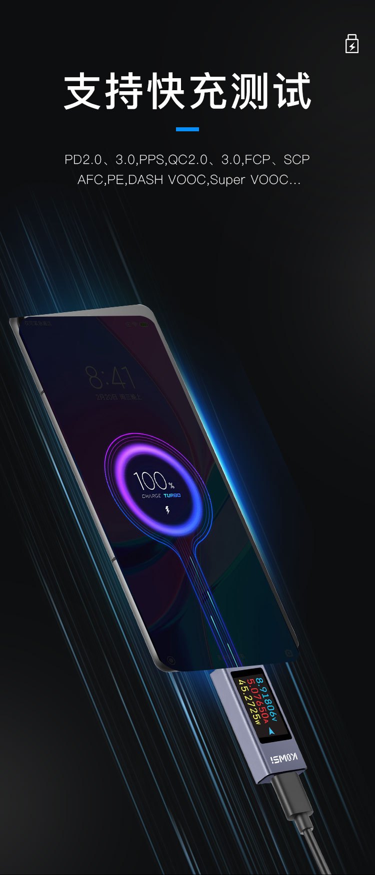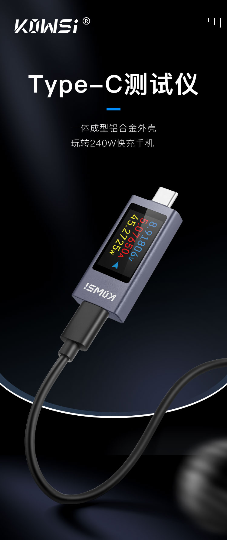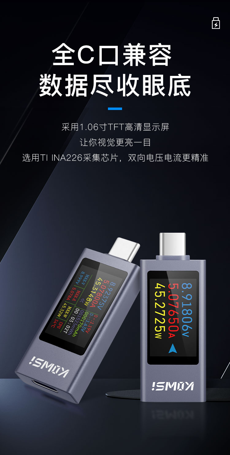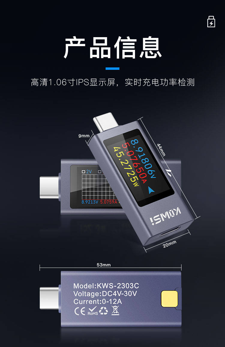 2303C mobile phone charging detector supports 12A high current PD DC voltmeter USB power meter