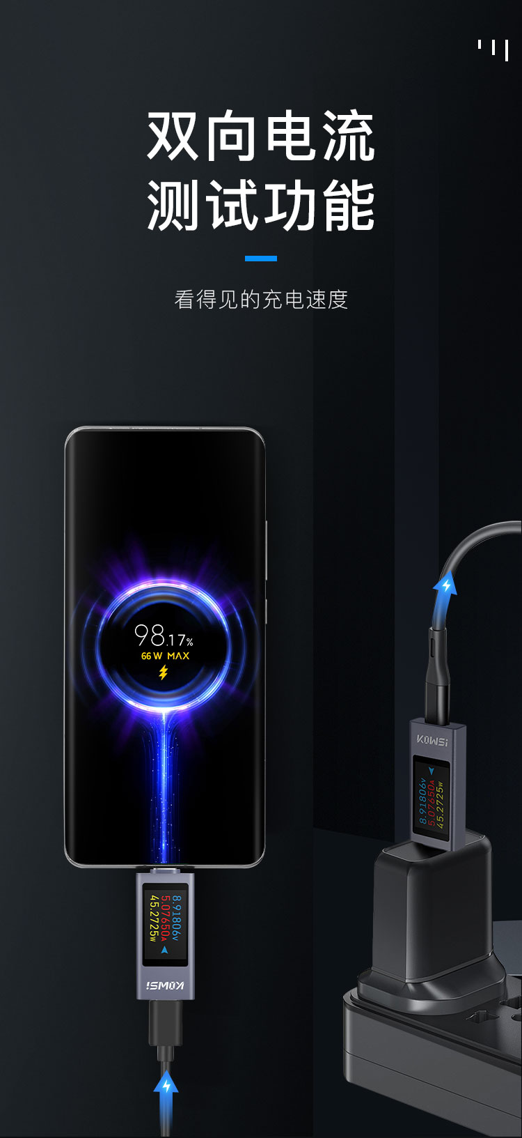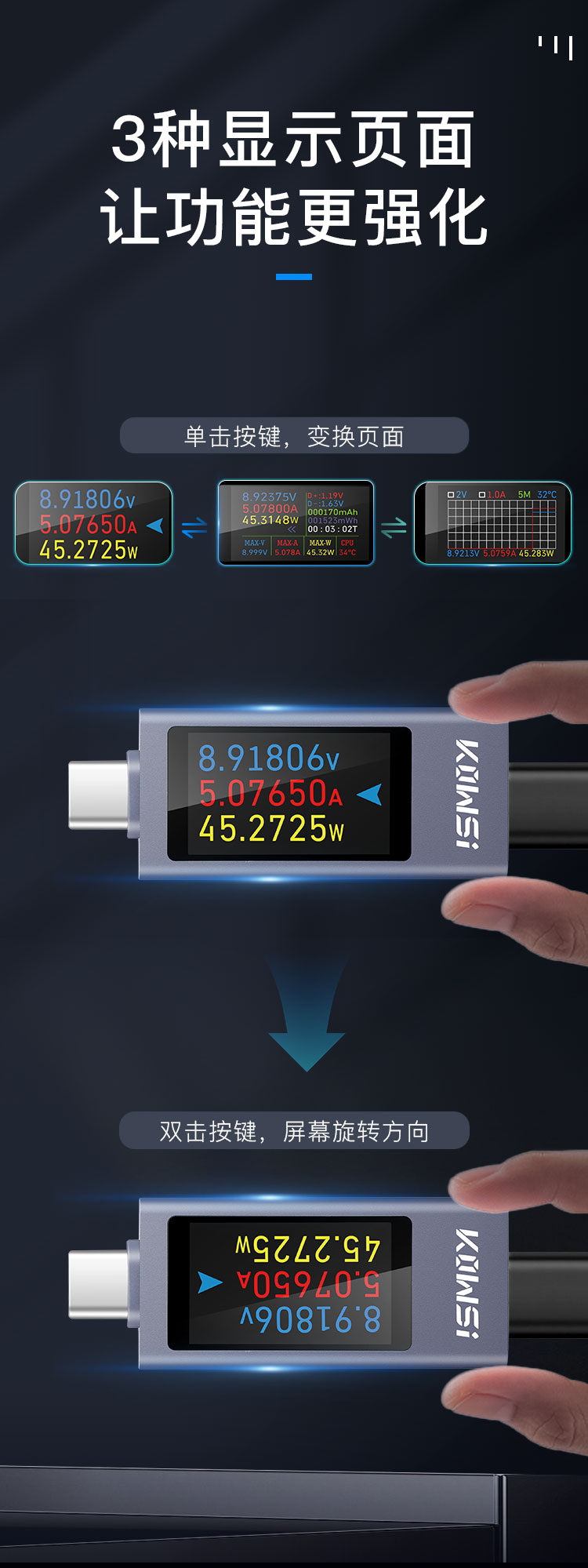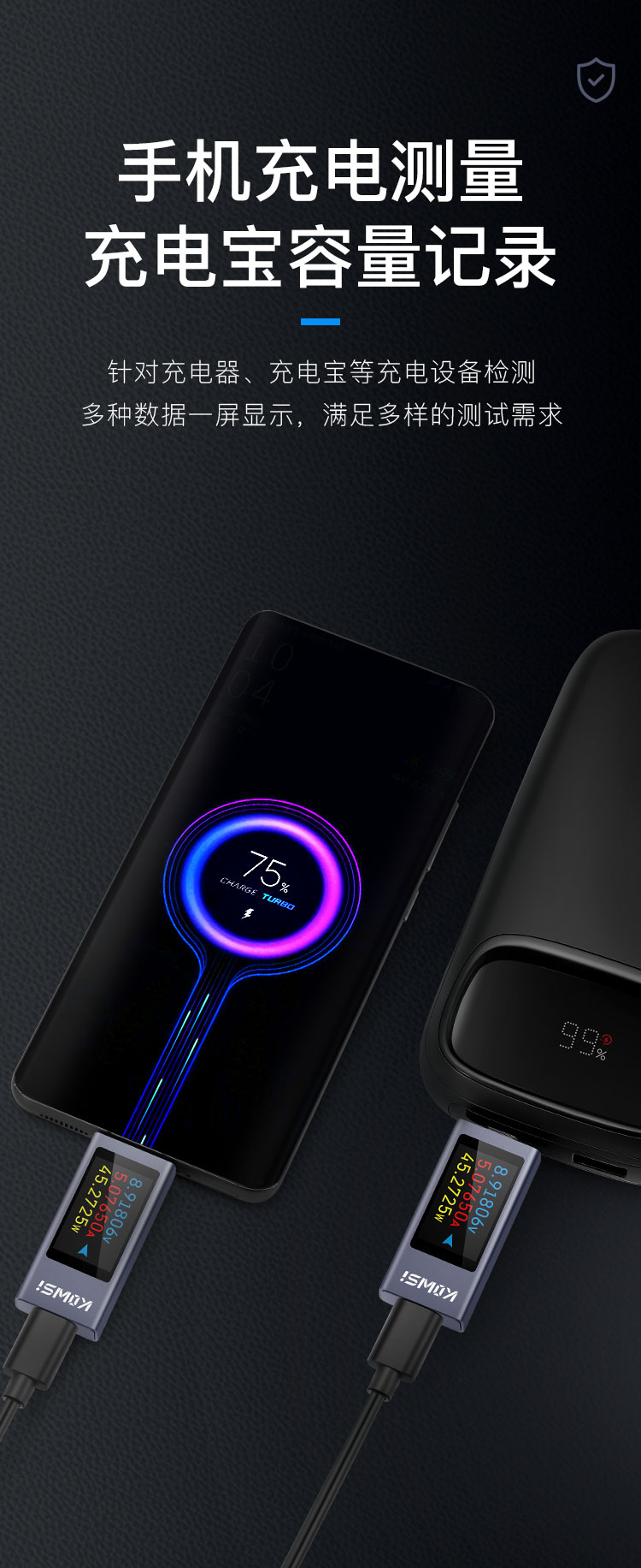 2303C mobile phone charging detector supports 12A high current PD DC voltmeter USB power meter