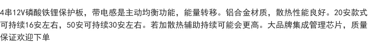 Active equalization board 4 strings of aluminum substrate inductive 20 A, 30 A lithium iron phosphate protection board