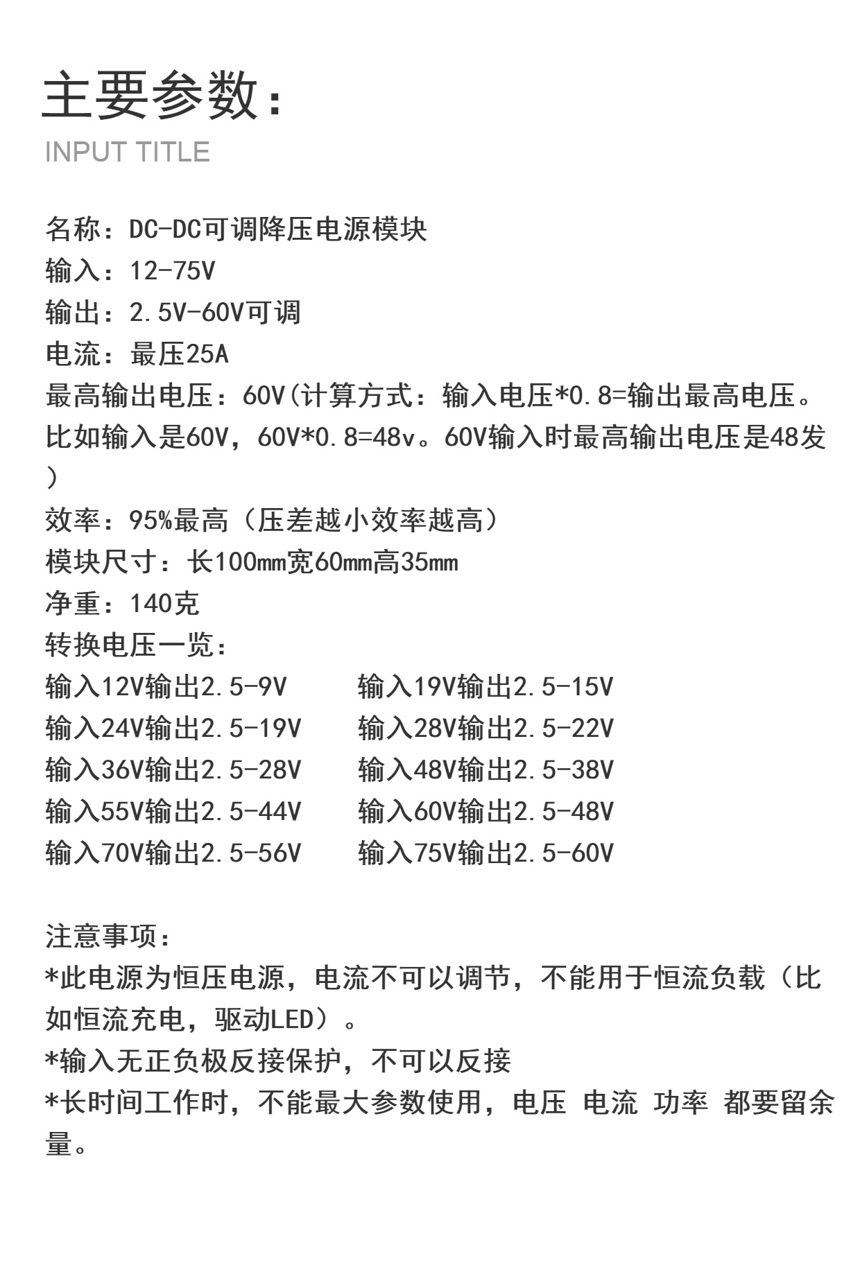 Dc-Dc Dc Adjustable Step-Down Module 12V-75V to 5V19V21V24V48V600W High Power Converter