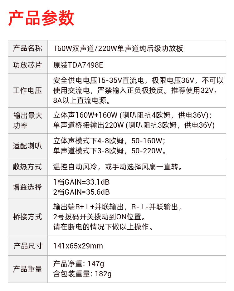 1602 amplifier board pure rear 160WX2 DIY high power TDA7498E stereo Bridge mono W